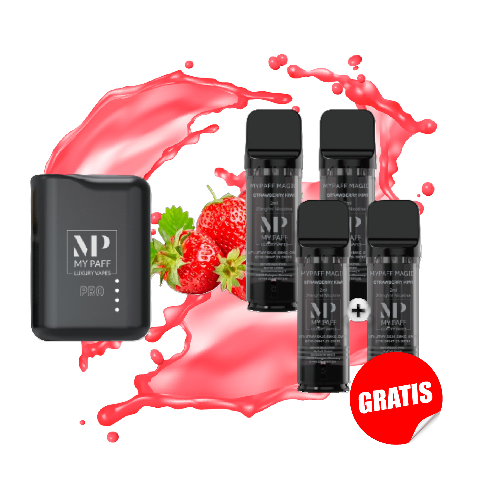 PACK MY PAFF PRO CAPSULA DESECHABLE 2ML - STRAWBERRY KIWI x4 + BATERIA