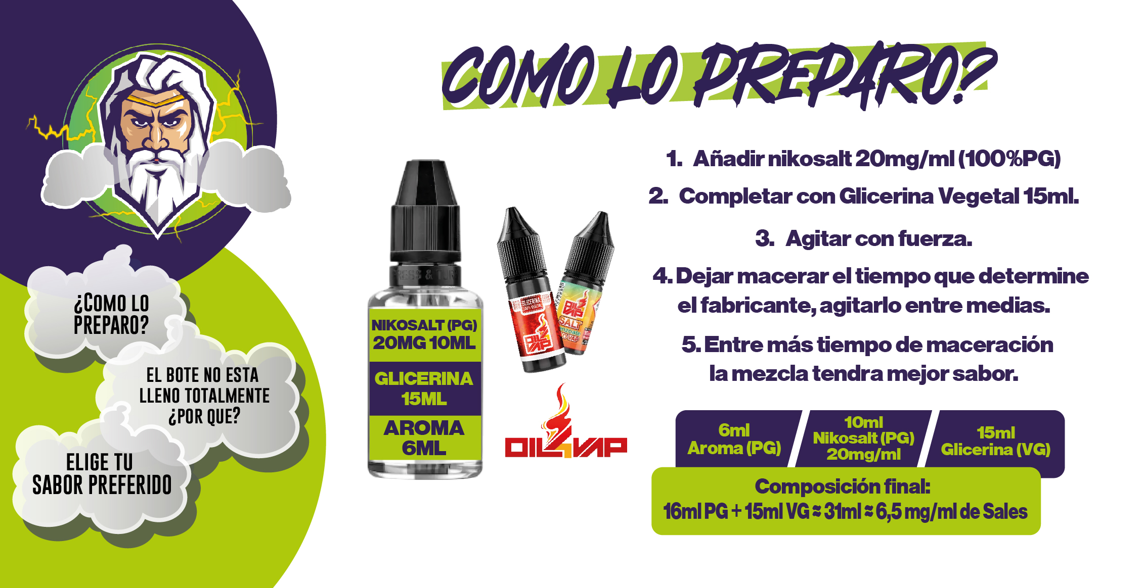 GRATIS: 15ML Glicerina Vegetal 100% VG Y NIKOVAP SALT 20MG/ML Propilenglicol 100% PG.