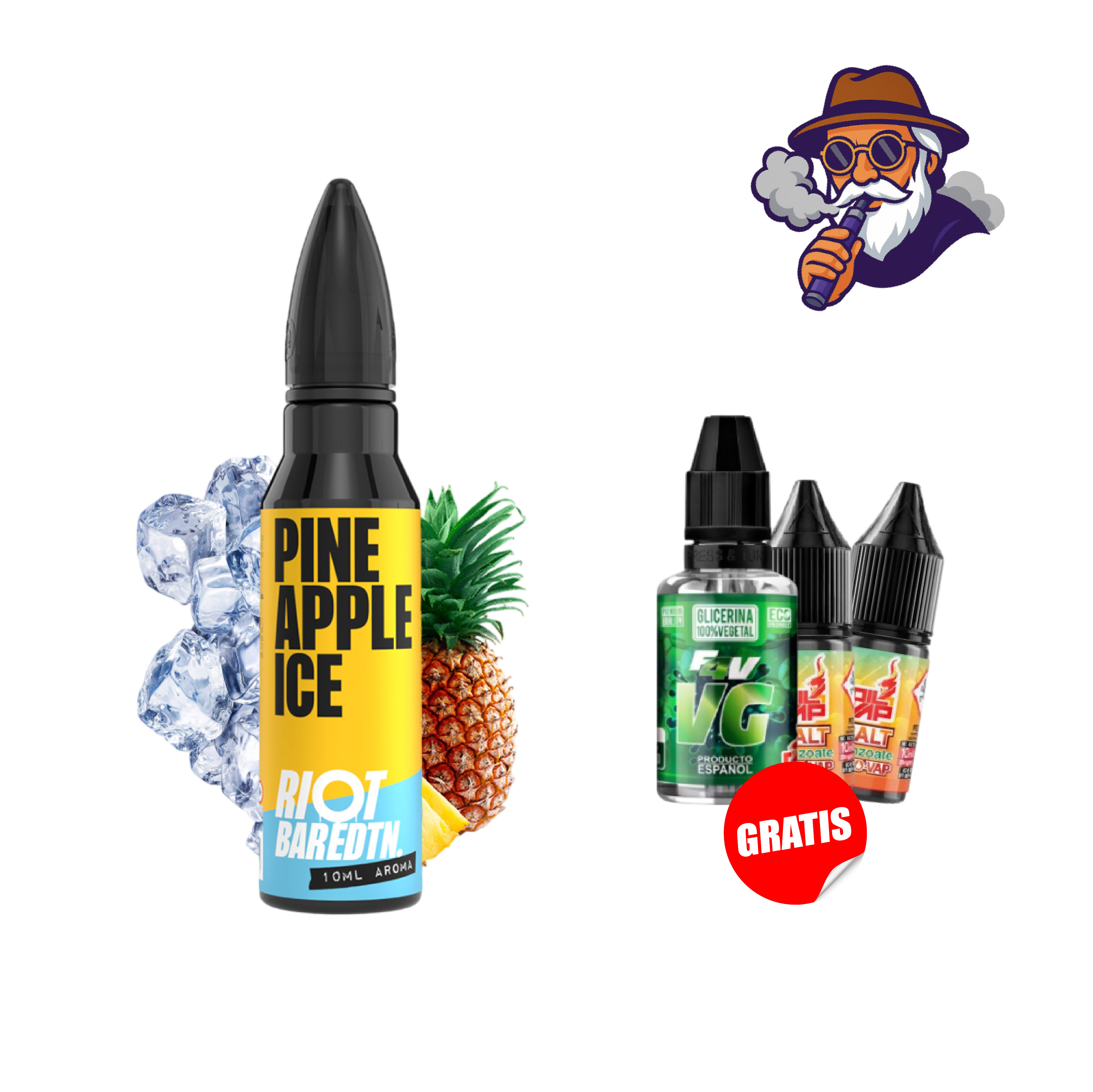El aroma Pineapple Ice de Riot Squad Bar EDTN sabe a una jugosa piña exótica y ácida con un toque final de frescor, incluye glicerina fast 30ml y 2 nikosalt benzoato pg 20mg/10ml.