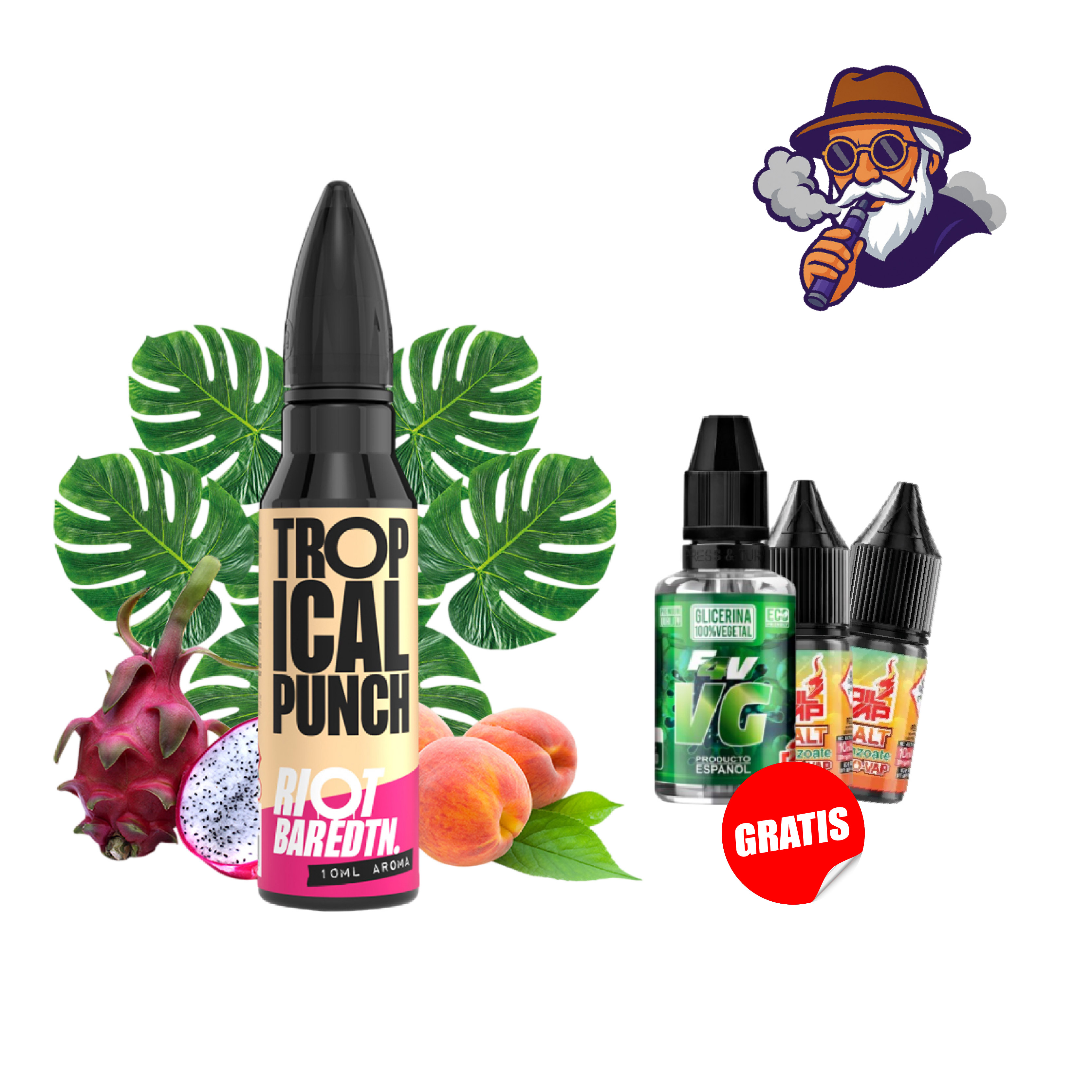 El aroma Tropical Punch de Riot Squad Bar EDTN recuerda al sabor de una sabrosa infusión tropical de fruta del dragón y melocotón. Ideal para los amantes de los sabores frutales, incluye glicerina fast 30ml y 2 nikosalt benzoato pg 20mg/10ml.